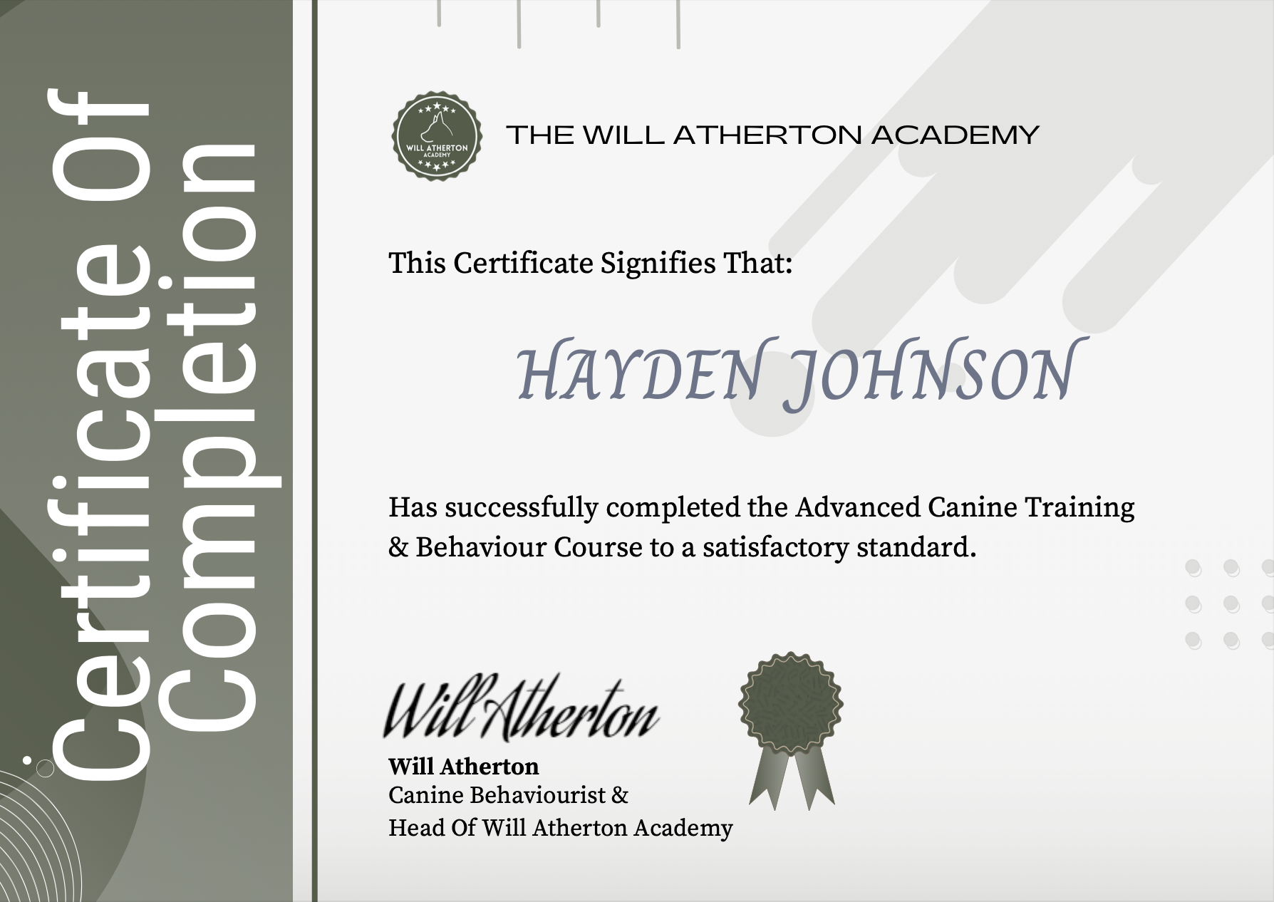 I am a dog trainer who has studied canine behavior and psychology through the Will Atherton Academy for the last year. I am an active trainer and behavior assistant at a local animal shelter, where I’ve gained more experience working with all types of breeds, sizes, and temperaments. Learning and acquiring more skills for my practice is a continuous journey that I incorporate daily.